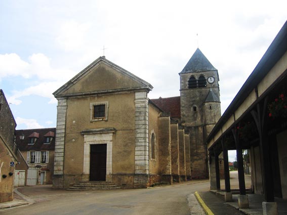 ARCHITECTURE Intérieur : On relève, au choeur et à l'abside à trois pans, des bases de piliers et des chapiteaux de la fin du XIV e siècle ou du début du XV e siècle. La tour du clocher rappelle d'ailleurs le XV e siècle. L'abside, encadrée de deux chapelles latérales s'ouvrant sur le choeur, donne tout lieu de supposer que des bas-côtés s'étendaient autrefois de chaque côté de la nef. |