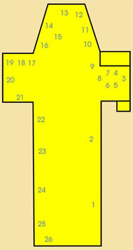 | 12) Calvaire, panneau peint du XVII e s. 13) Retable du maître-autel orné de statues, tabernacle et boiseries, bois sculpté peint et doré, début XVIII e s. 14) Crédence, bois sculpté et doré, début XVIIIe. 15) Lutrin, aigle en bois sculpté et doré, pied en métal fondu et martelé, peint, du XVIII e s. 16) La Cène, panneau peint du XVII e s. 17) Saint Louis recevant la couronne d'épines, huile sur toile du XVII e s. |