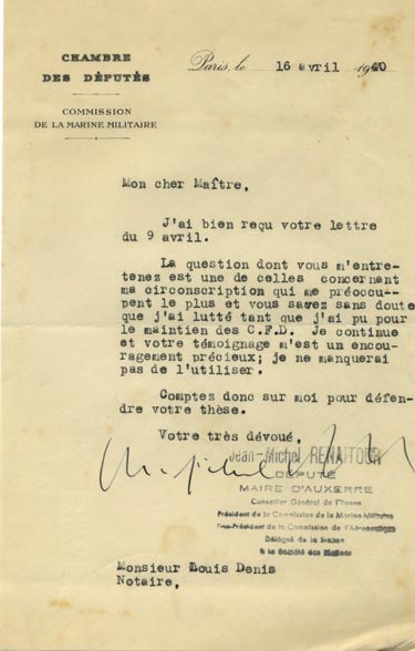 Jean-Michel Renaitour, de son véritable patronyme Tournaire (Pierre, André) (1896-1986), toucha à beaucoup de domaines. Écrivain, poête, il pilota un avion bombardier pendant la guerre de 1914, fut journaliste à L'Oeuvre de Marcel Déat, conseiller général de Seignelay (1926), député de l'Yonne (1928-1942), maire d'Auxerre de 1929 à 1942 .